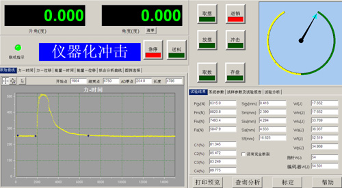 其一是仪器化金属摆锤冲击试验机与普通试验机主要不同点是仪器化(数字化):即控制、能量显示及冲击曲线的采集和处理均实现数字化。冲击试验结果用图形显示使之形象化,获得冲击力-时间、冲击力-位移等曲线;